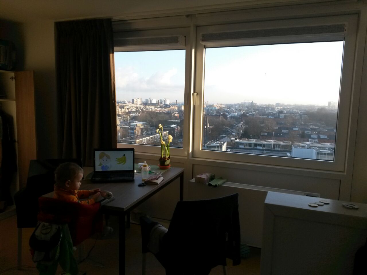 With little to almost no time to really look for apartments and really no clue about anything in Amsterdam, we agreed to take the apartment in a new student housing building that was built in 2014 (stark contrast to our apartment in Siena). Wait…. yes, I said student housing. Maybe you’re thinking ‘Does he mean dorms’? Yes, we’re in a dorm. We’ve gone backwards in some regards, however when compared to our apartment in Siena, we find it surprisingly liveable. Yes, there’s only one room, and our bed is currently a mattress on the floor, but ¼ of the walls are windows, it’s warm, there’s hot water whenever you want it, and there’s all the internet one could want. What really makes our dorm room liveable is that we’re not in it all of the time. Amsterdam offers so much for families. There are probably 10 parks full of toys, swings, and sandboxes within a 5-minute bike-ride away from our house and two within walking distance.