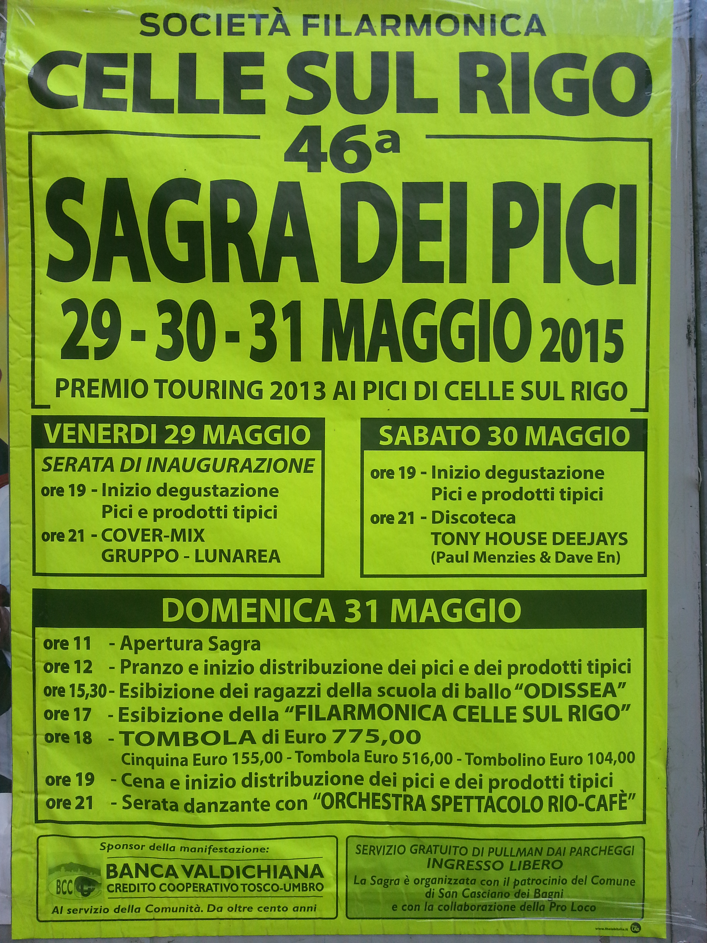 The town of probably 400 people hosted an average of about 1000 people per night for three nights. 20-some local women spent three days hand-rolling pici. The thing that struck me as an American, was the choice by the e