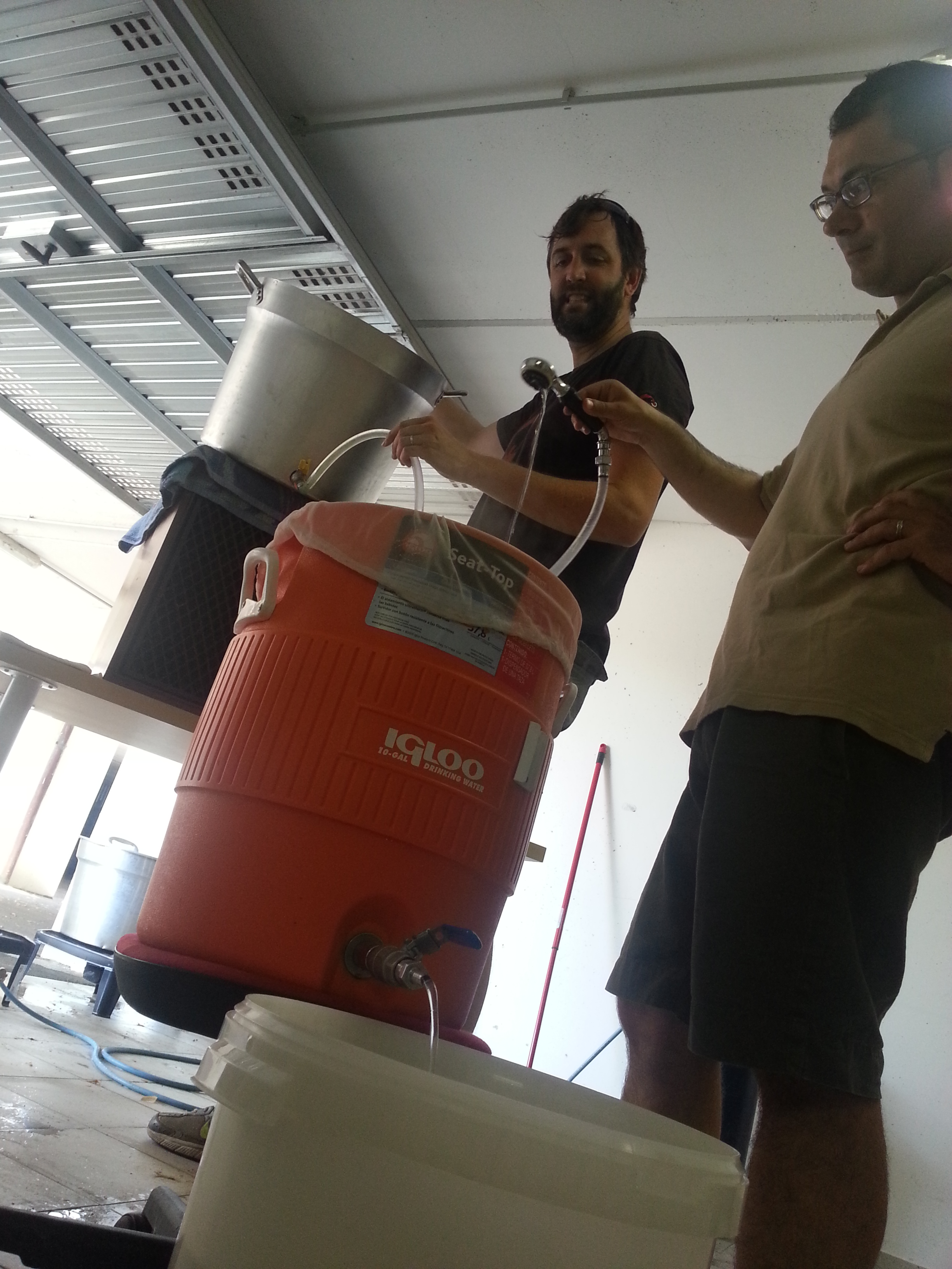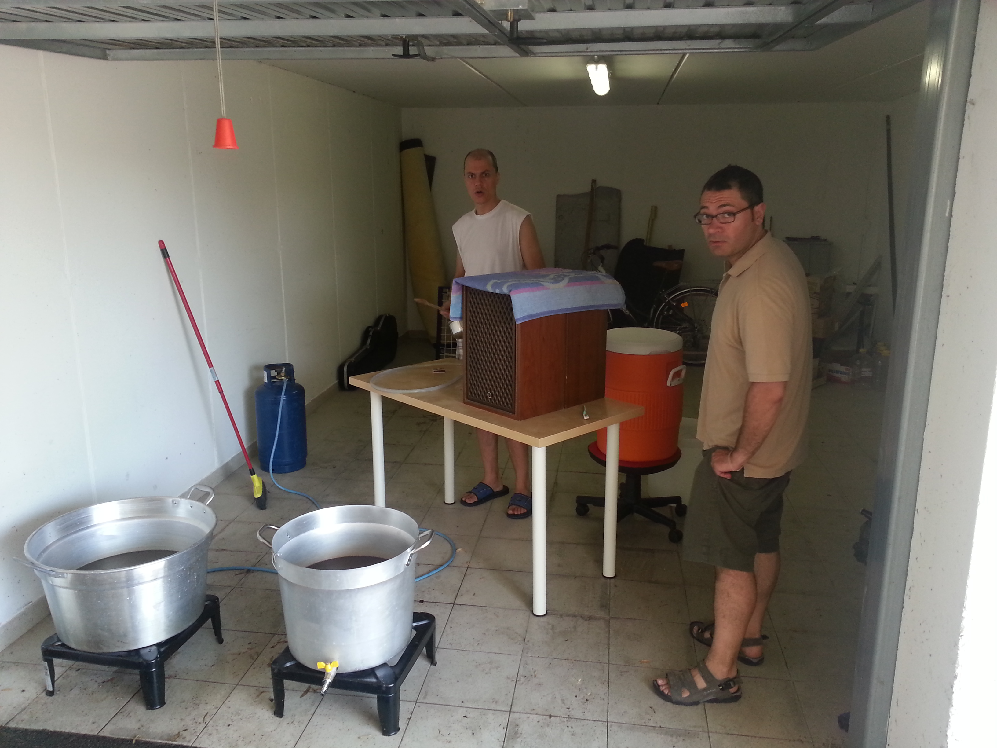 When Marianna and I found out that she was pregnant, I knew that the kitchen brewery’s days were numbered. Maybe one day Sean and I will brew a beer together, but it will have to wait a few years. Gabriele came up with the solution by offering his garage and our “brewery” took a step forward. Our system is far from professional; a collection of self-engineered containers and tools that each have their own strange quirks.