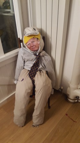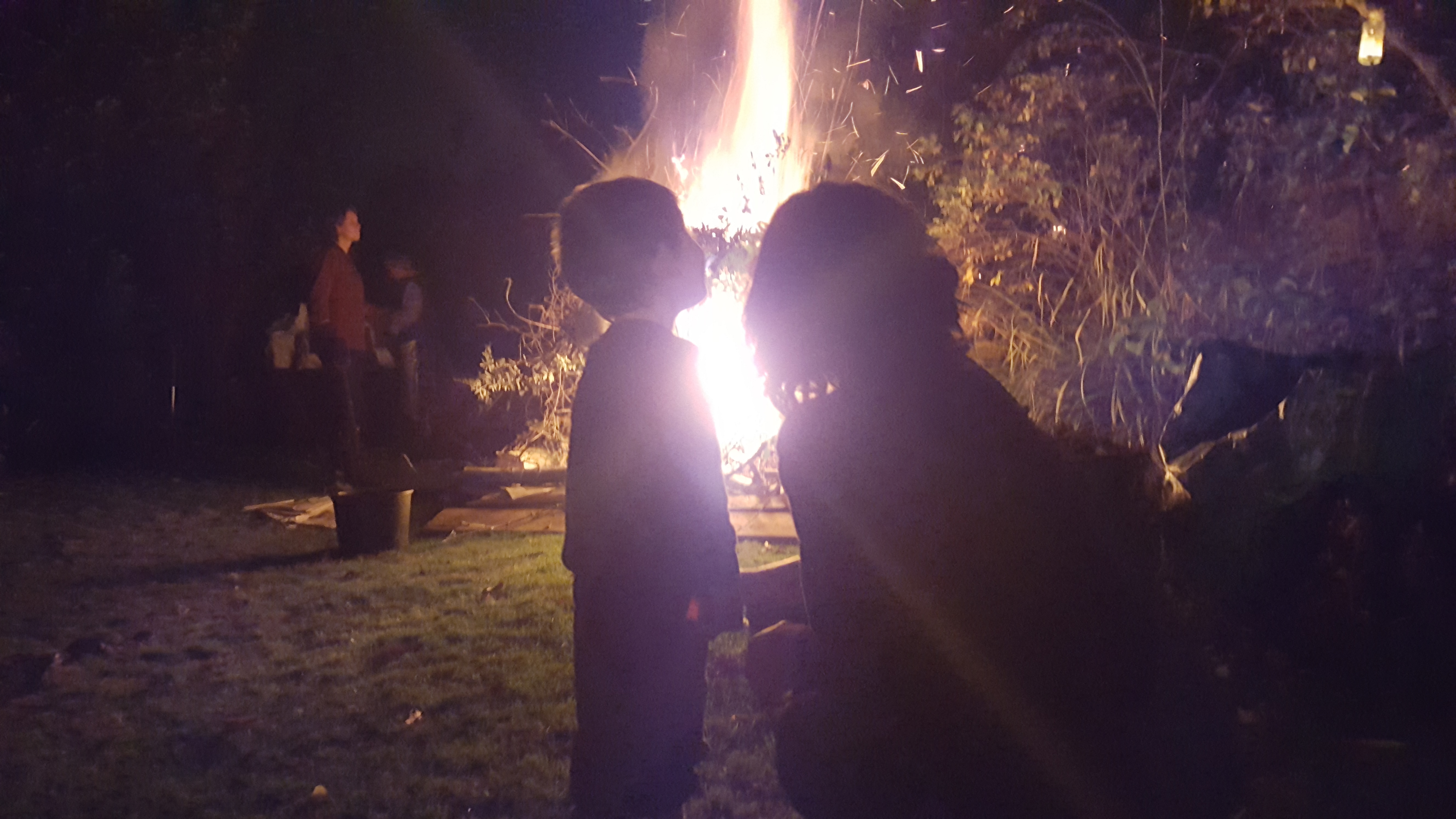 Dinner was impressively served to more than 25 people at a table made for about 10. In stereotypically British fashion, politeness prevailed despite almost sitting on top of one-another. When everyone had been served their sausage and jacket potatoes (baked potatoes, for us, less-descriptive Americans), the patriarch of the situation announced calmly that he would be heading outside to throw Trump onto the bonfire and that fireworks would shortly follow. The rest of the partygoers were just as mild-mannered and almost nobody reacted with any sense of urgency to follow. I was thoroughly intrigued however. I grabbed Sean and took him outside along with Marianna. I feel that I needed to experience every minute of this and so did my Son.